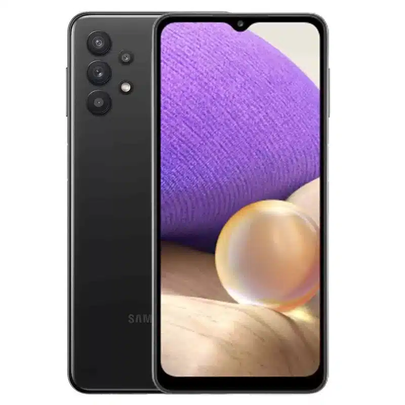 The Samsung Galaxy A32 is a mid-range smartphone released in 2021, featuring a 6.4″ Super AMOLED display (90 Hz), MediaTek Helio G80 processor, quad rear camera (64 MP main), 20 MP selfie camera, 5000 mAh battery with 15 W fast charging, and an in-display fingerprint sensor.